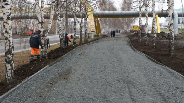 При строительстве пешеходных тротуаров специалисты расчистили территорию от дикорастущих деревьев клена. Взамен убранной разросшейся сорной зелени планируется высадить новые саженцы.