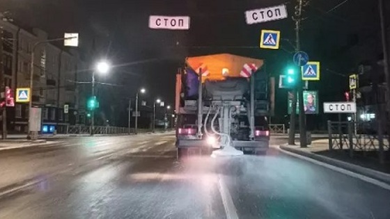 Техника выезжает на маршруты в зависимости от погодных условий. Обработка городских магистралей от гололеда проводится технической солью «Галит».