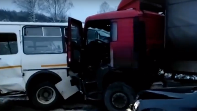 Фура врезалась в автобус с вахтовиками. Есть погибший