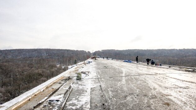 Уточняется, что конструкции моста уже надвинуты. Завершены и бетонные работы. В настоящие время рабочие приступили к укладке асфальтового покрытия. Отставания в графике нет, доложил главе округа руководитель контракта ООО «ЕвроТрансСтрой» Виталий Узюмов.
