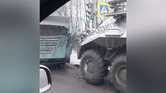 В Санкт-Петербурге БТР врезался в пассажирский автобус