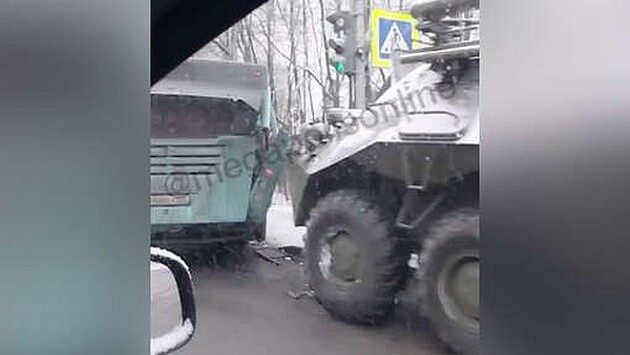 Бронетранспортер врезался в пассажирский автобус в Санкт-Петербурге. Об этом сообщает Telegram-канал "Мегаполис. ДТП и ЧП. Санкт-Петербург. Инцидент произошел на пересечении улицы Песочной и Выборгского шоссе. Судя по видео, автобус поворачивал направо на перекрестке, когда в его заднюю часть въехал бронетранспортер. У автобуса повреждена кузовная деталь, в которую вмонтирован фонарь и стоп-сигнал. У военной машины повреждений нет. На место происшествия прибыли машины ГИБДД. Причины и обстоятельства аварии устанавливаются. Ранее сообщалось, что в Великом Новгороде военный грузовик столкнулся с легковушкой. Инцидент произошел на ул. Большая Санкт-Петербургская, д. 73. Автомобиль Renaul Logan выезжал с второстепенной дороги на главную, когда в него врезался военный грузовик "КамАЗ". Пострадал один человек.