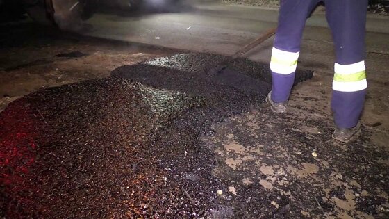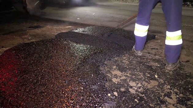 В настоящее время с наступлением устойчивых холодов на дорогах и тротуарах начата укладка литого асфальта, который после завершения зимнего сезона будет заменяться на штатный асфальт марки D3 или ЩМА.
