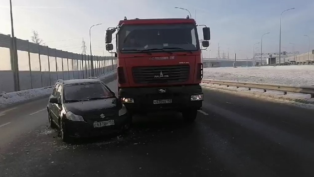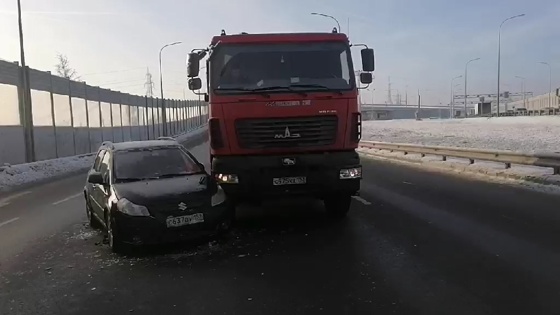 «Чтобы прекратить снос автомобиля, водитель открыла дверь. В это время по соседней полосе в попутном направлении двигался МАЗ, за рулем которого находился 54-летний гражданин Армении. Грузовик правой частью кабины „закрыл“ дверь японского авто обратно, зажав женщине левую ногу», — уточнили в дорожной инспекции.