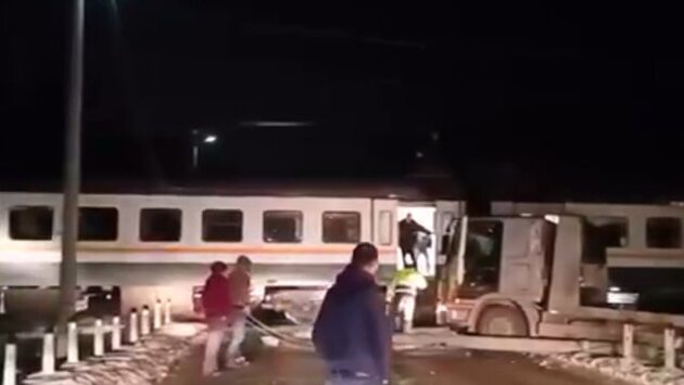 Появилось видео с места ДТП с участием поезда и большегруза в Подмосковье. Его разместил телеграм-канал "ЧП/Москва". Происшествие случилось вечером во вторник, 29 ноября, на однопутном перегоне Большая Волга – Соревнование. Грузовая машина совершила выезд на пути перед близко идущим пригородным поездом № 6 917 Дубна – Москва – Бутырская. По данным пресс-службы магистрали, водитель большегруза не обратил внимания на красный свет. Машинист, в свою очередь, попытался экстренно затормозить, однако расстояние было слишком маленьким. В результате столкновения с рельсов сошли два вагона электрички, были зафиксированы повреждения в инфраструктуре. По информации ЦППК, в составе было порядка 30 человек. По предварительным данным, никто не пострадал. Для помощи водителю были вызваны медики.