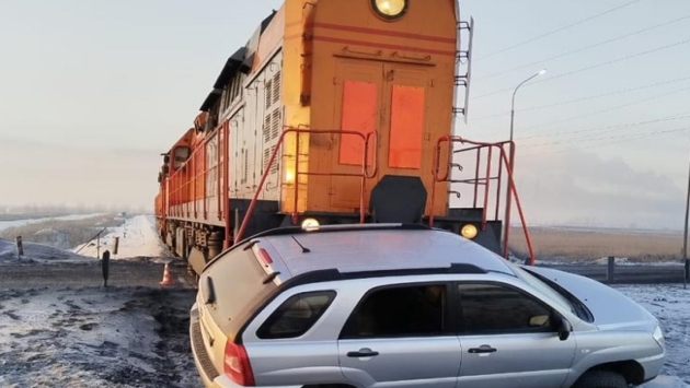 Автомобиль Kia Sportage столкнулся с тепловозом у села Легостаево под Новосибирском