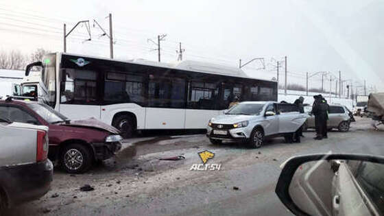 Массовое ДТП произошло в Первомайском районе Новосибирска. Об этом сообщает паблик "АСТ-54" в социальной сети "Вконтакте". "На улице Первомайской участниками аварии стали бортовая "Газель", компактный автомобиль Mazda Demio, седаны Renault Logan, и Daewoo Nexia, универсал LADA Vesta, микроавтобус и контейнеровоз", - говорится в сообщении. Судя по видео, контейнеровоз не смог вовремя затормозить перед стоявшими на поворот автомобилями, въехал в "Газель" и одну из легковушек, спровоцировав цепную аварию. Затем большегруз выехал за пределы дороги. Отмечается, что еще одним участником аварии стал автобус, который неудачно попытался объехать участников ДТП. Ранее сообщалось, что два человека погибли и трое пострадали при столкновении легковушки и грузовика в Башкирии.