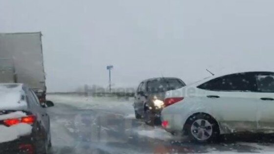 На кадрах, которыми поделились пользователи, видно, что на дороге стоят по меньшей мере восемь автомобилей, некоторые из них получили повреждения, вероятно, из-за столкновения.