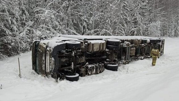 По данным ГИБДД, водитель «Скании» не справился с управлением, съехал в кювет и опрокинулся на бок. На место происшествия выезжали сотрудники ДПС и МЧС.