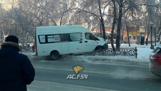 В Новосибирске маршрутное такси №18 снесло ограждение и врезалось в дерево