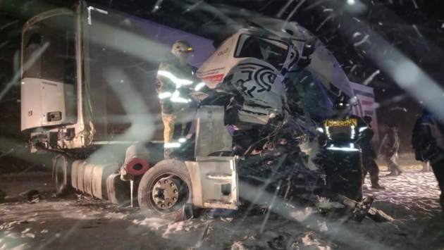 Две фуры и иномарка столкнулись на снежной трассе под Барабинском