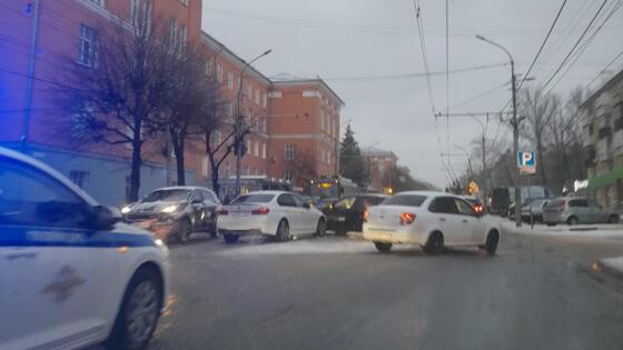 ДТП случилось утром во вторник, 13 декабря, на улице Гагарина. Судя по кадрам, столкнулись две легковушки. На месте работает экипаж ДПС.