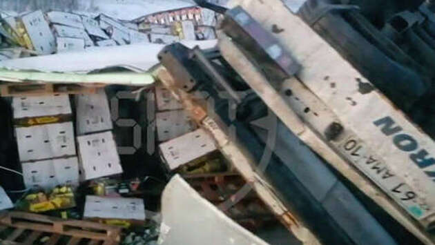 Грузовой автомобиль с ананасами перевернулся на трассе под Нижним Новгородом. Об этом сообщает Telegram-канал Shot. Инцидент произошел на Нижегородской объездной дороге. Фура перевернулась на дороге. Сам тягач опрокинулся в кювет, а прицеп с контейнером - на трассу. Из него на асфальт высыпались ящики с ананасами. О том, пострадал ли водитель большегруза и что стало причиной ДТП, неизвестно. Ранее сообщалось, что в Челябинской области фура с мандаринами перевернулась на трассе М-5, из-за чего вся дорога оказалась усыпана цитрусовыми.