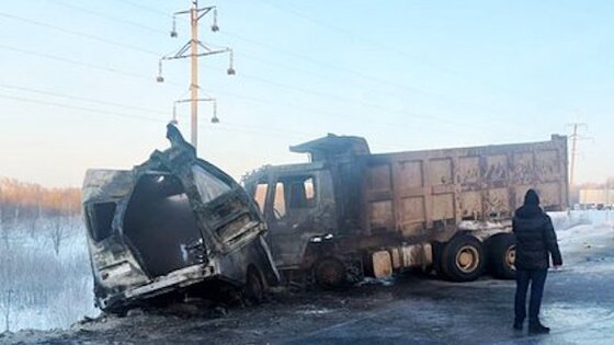 Автор видео сообщает, что машина скорой обогнала его автомобиль за несколько минут до съемки, после чего столкнулась с грузовиком.