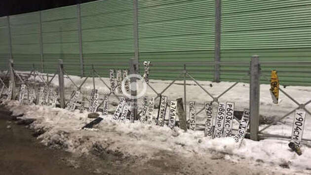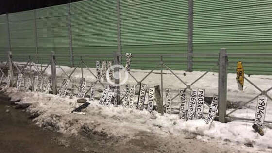 На транспортной эстакаде в поселке Жаворонки городского округа Одинцово в Московской области обнаружено более 30 автомобильных номеров, оторвавшихся от проезжающих автомобилей. Об этом сообщается в паблике "Типичное Одинцово" в соцсети VK. На фотографиях с места происшествия видно более 30 номерных знаков, которые прислонены к дорожному ограждению. Утверждается, что все они скопились в большой луже на проезжей части и были извлечены оттуда. Среди стандартных российских номеров, использующихся на легковых автомобилях и грузовиках, замечен белорусский транзитный знак, а также сильно смятый номер желтого цвета - такие используются на автобусах и такси. Ранее стало известно, что в Ленинградской области водитель "Жигулей" бросил пивную кружку в заднее стекло трактора, который занимался чисткой дороги. Тракторист получил травму головы.