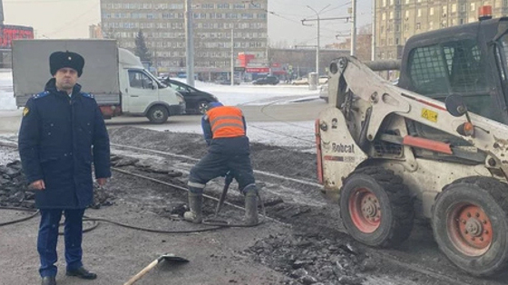 После вмешательства прокуратуры Заельцовского района в Новосибирске МКУ «ДЭУ 1» восстановило разрушенную дорогу вдоль трамвайных путей на площади Калинина.