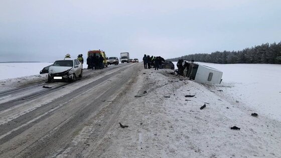 На трассе в Татарстане перевернулся микроавтобус с 11 пассажирами