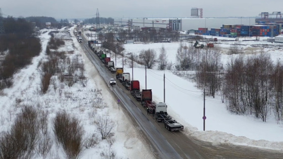 Десятки большегрузов стоят в огромной пробке в Калужской области