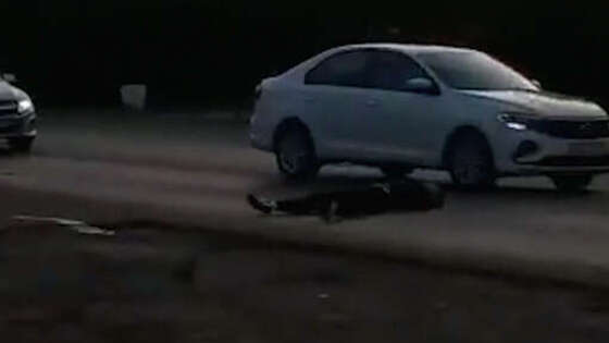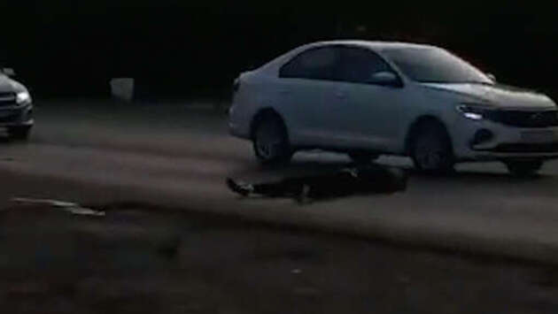 Пешеход лег посреди дороги перед проезжающими машинами в Ростове-на-Дону