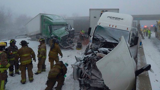 Около 50 автомобилей столкнулись на заснеженном шоссе в США