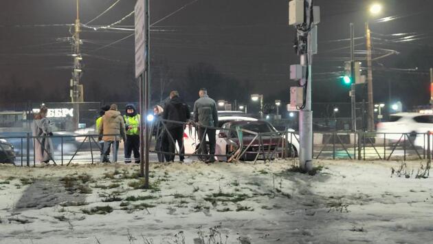 В Рязани напротив Центрального автовокзала машина врезалась в забор из-за аварии