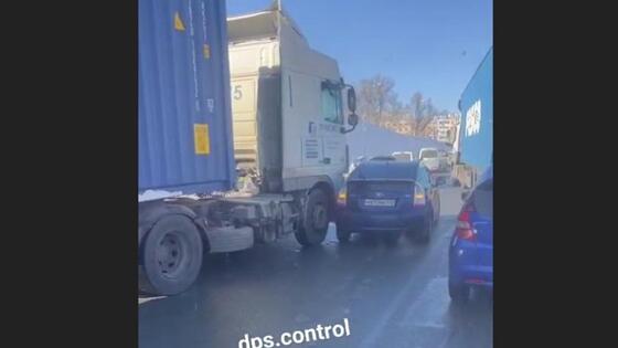 «Приус» vs большегруз. Еще одна авария во Владивостоке попала на видео