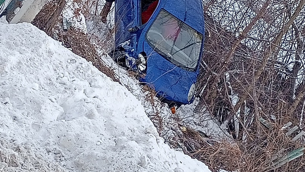 В Гурьевске местный житель съехал на автомобиле с дороги и "припарковал" его на ствол дерева.
