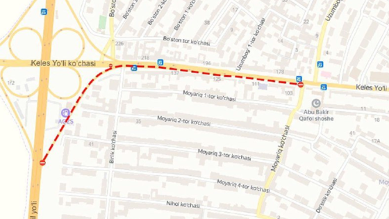 Администрация Ташкента сообщила, что на отрезке от ТКАД до участка Мойарик будет недоступна остановка транспортных средств.