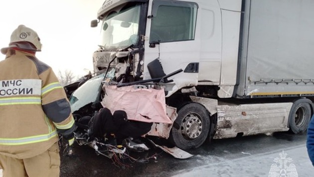 На трассе под Оренбургом при столкновении с фурой внедорожник разорвало напополам
