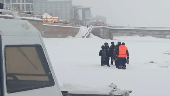 Между кромкой льда и берегом был небольшой участок воды, который не позволял мужчинам выбраться на набережную.