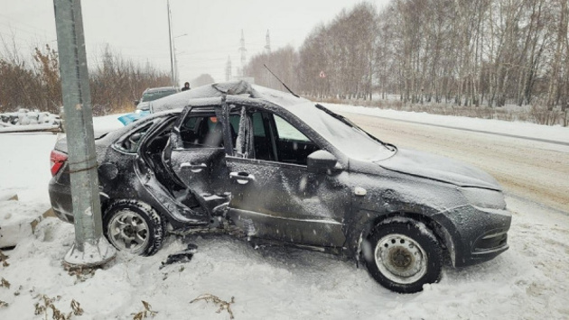 Подросток находится в больнице: на трассе в Самарской области "ЛАДА Гранта" влетела в столб