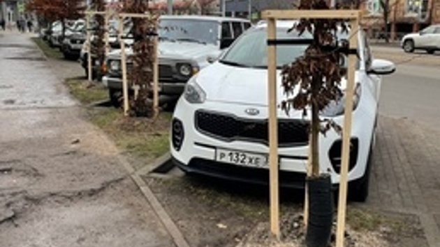Интернет-пользователи отметили, что при посадке деревьев половину тротуара засыпали землёй и спросили, «нормально ли это».