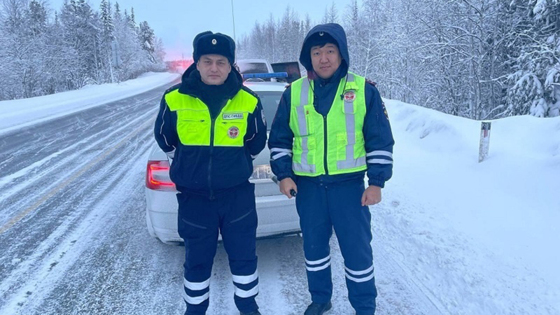 Ноябрьские инспекторы ДПС помогли водителю и двум детям не замерзнуть на трассе
