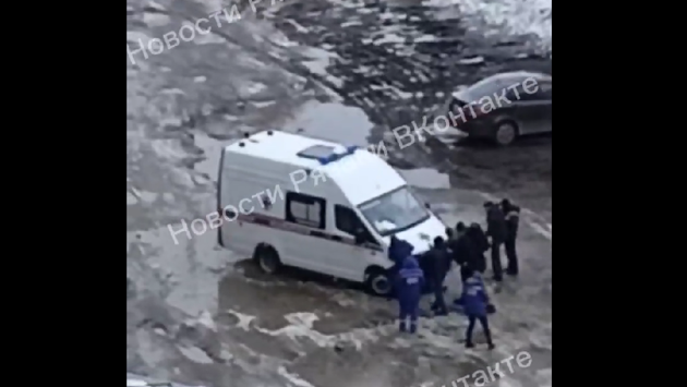 В Рязани бригада «скорой» застряла на служебном автомобиле в нечищеном дворе
