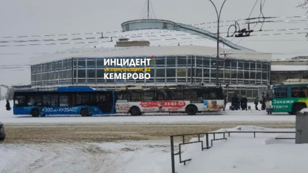 Кемеровчане рассказали о столкновении троллейбуса с автобусом около цирка.