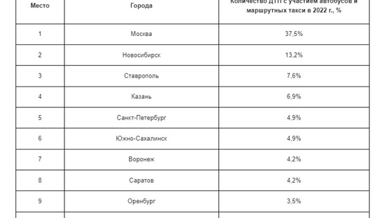 Рекордсменами по авариям среди общественного транспорта стали Москва, Новосибирск и Ставрополь