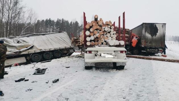 Сегодня в 10 часов 30 минут в Свечинском районе Кировской области на 445 км федеральной автодороги Кострома – Шарья – Киров – Пермь произошло столкновение четырёх грузовых автомобилей: «Ивеко», «Скания», «ДАФ», КамАЗ. В результате аварии, по предварительным данным, один водитель получил травмы. В настоящее время по факту ДТП проводится проверка, устанавливаются все обстоятельства произошедшего. Движение по трассе на данном участке ограничено. Предусмотрен объезд через посёлок городского типа Свеча.