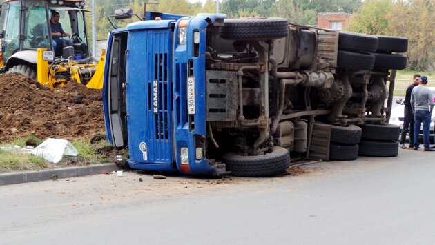 На Старосимферопольском шоссе перевернулся груженый песком грузовик