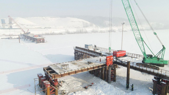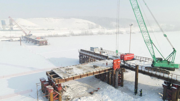 Отмечается, что возле Звездного рабочие начали монтаж железобетонных балок путепровода через трассу Кемерово – Юрга. Длина одной балки – 33 метра, масса – 61 тонна. Для создания двухпролетного виадука понадобятся 16 таких элементов.