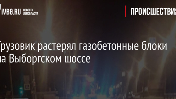 Накануне ночью блоками газобетона оказалась усеяна часть Выборгского шоссе в Сертолово Всеволожского района Ленобласти. Фото: Dorogi_lo/телеграм В комитете по дорожному хозяйству рассказали, что, скорее всего, газобетон загрузили в машину в поврежденной упаковке. Строительные материалы удалось быстро убрать. Во время работ движение по Выборгскому шоссе почти не ограничивали. Никто не пострадал.