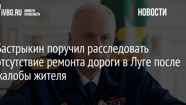 Бастрыкин поручил расследовать отсутствие ремонта дороги в Луге после жалобы жителя