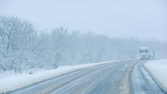 В Волгоградской области возникла пробка из фур во время снегопада