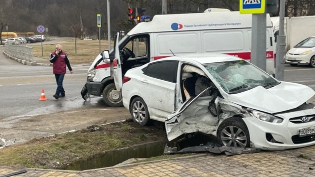 - По предварительным данным, 56-летний водитель автомобиля скорой помощи двигался на запрещающий сигнал светофора с включенными проблесковыми маячками и не предоставил преимущества в движении водителю Hyundai Solaris, который ехал в этот момент по улице Тобольской на разрешающий сигнал светофора, - сообщили в Гоасавтоинспекции Новороссийска.
