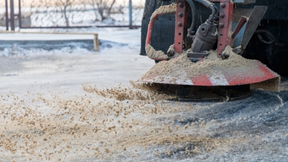 После нанесения смеси песка и соли на снег происходит химическая реакция, после этого уже подтаявшую массу убирают с проезжей части при помощи тракторов, погрузчиков и комбинированных дорожных машин.