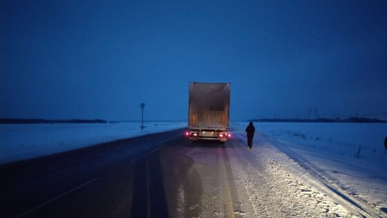 На 135 километре трассы дальнобойщик сбил пешехода, который двигался по проезжей части в попутном направлении. На одежде пешехода не было световозвращающих элементов.