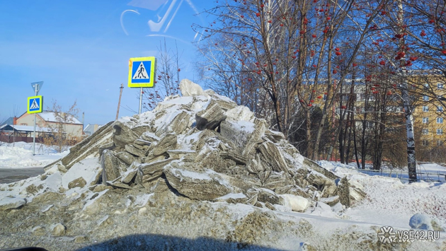 Собранная коммунальными службами гора может стать причиной ДТП, в том числе с участием пешехода, так как рядом находится нерегулируемый переход.
