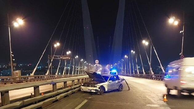 ДТП произошло на Золотом мосту. Сотрудники полиции установили, что 24-летний молодой человек, не имеющий водительского удостоверения, управлял автомашиной Toyota Mark II. При движении со стороны улицы Суханова в направлении Очаковской водитель не справился с управлением и въехал в леерное ограждение.