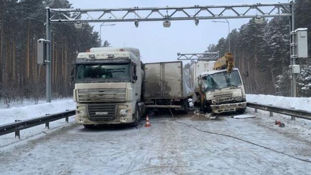 «По предварительным данным, произошло столкновение автомобилей DAF, манипулятора и «Газона», – уточнили в дорожной полиции. На данный момент известно, что травмы в результате происшествия получил водитель «Газона». Мужчину доставили для осмотра в Березовскую центральную городскую больницу. Из-за аварии движение на данном участке трассы было временно ограничено. Транспорт направляли в объезд через Березовский тракт. Сейчас движение на 25 км ЕКАД полностью восстановлено. Госавтоинспекция просит водителей быть осторожными на дороге из-за сложных погодных условий и снегопада. Дорожная полиция рекомендует снизить скорость на трассе и выбрать безопасный стиль вождения без резких перестроек и опасных маневров. Ранее «ФедералПресс» сообщал, что в Екатеринбурге из-за непогоды водители массово попадают в дорожные аварии. ФОТО: Госавтоинспекция Свердловской области