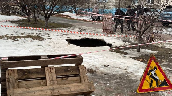 Уточняется, что грунт обвалился над канализационным коллектором, из-за чего образовалась трехметровая яма.