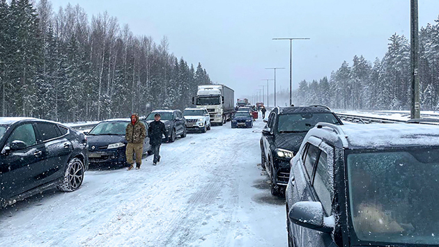 — До самой аварии буквально там, говорит, около километра было, то есть они находились уже в пробке, узнал, нужна ли помощь, ситуация неприятная, очень страшная. Одна машина из участников аварии, битумовоз, соответственно, битум разлит по дороге. Соответственно, все едут обратно, на выезд, на бесплатную обычную М10 трассу.